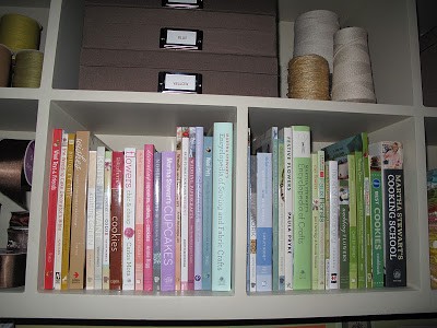 This was a pic Martha took of the studio and it has inspired me. I now want to switch my book shelf from organizating by sizes to by colors! Will report back on how it goes!