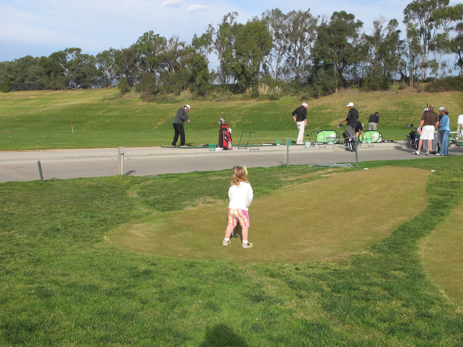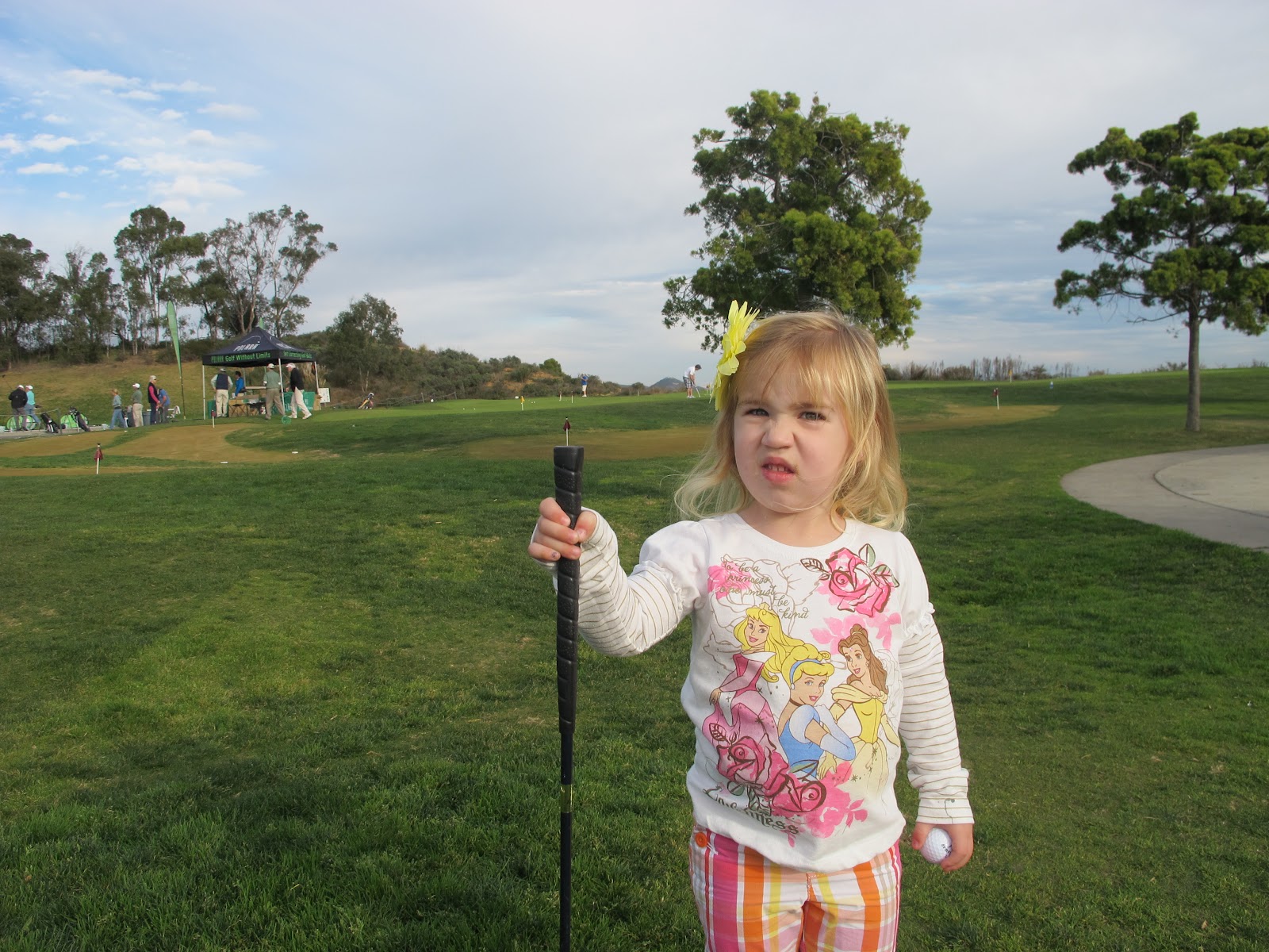 Well a few weeks ago, I put my nerves aside and said, "Hey Sydney, do you want to go to the golf course with daddy?" Happy and a little worried, I received an enthusiastic, "YEAH!!!!" After all, it's a common theme in the house for daddy to watch a little golf on the tube and I think she really did know what I was talking about.
