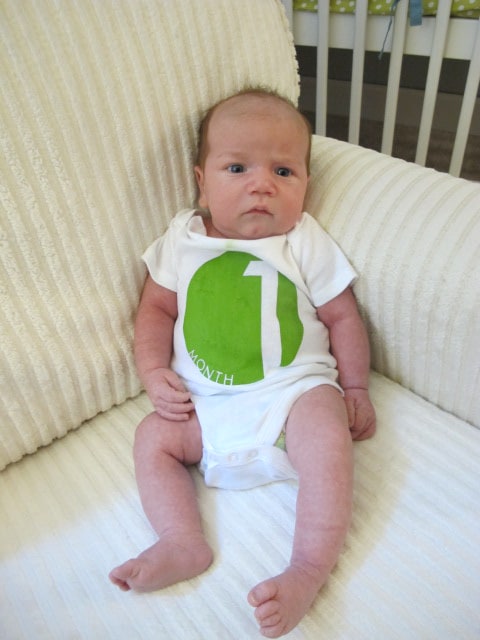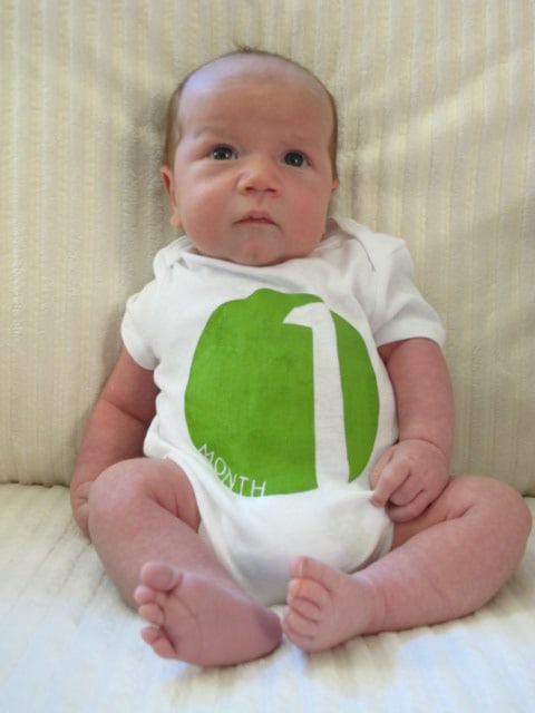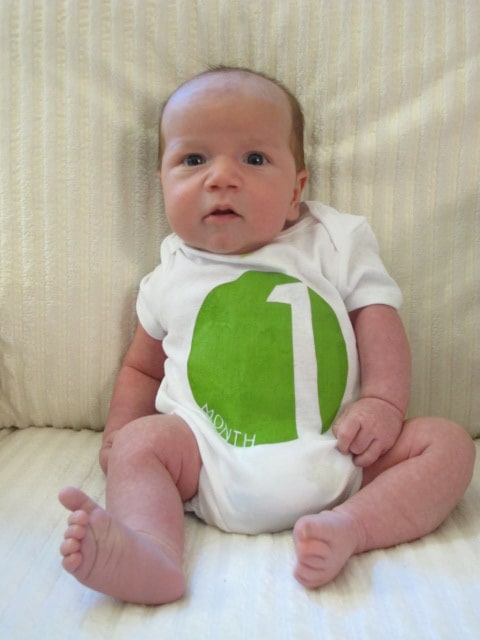 Over the past couple of years, a friend of mine, Kelly Tirman has been chronicling both her daughters growth, month by month on her blog. For both kids she was able to capture their growth in fun and unique ways. For her youngest daughter, she dressed her in a number onsie corresponding to her age in months.