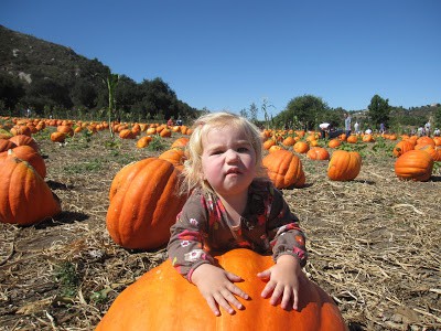 This past weekend we ventured up to the county's big pumpkin patch. I don't know what it is about the weekend we pick, but every year we venture up there, for some reason turns out to be a thousand degrees. Needless to say, trying to get a smiley pumpkin picture was just not in the cards for us! Although I love the faces she's making! I'm hoping sis got some good ones on her camera!