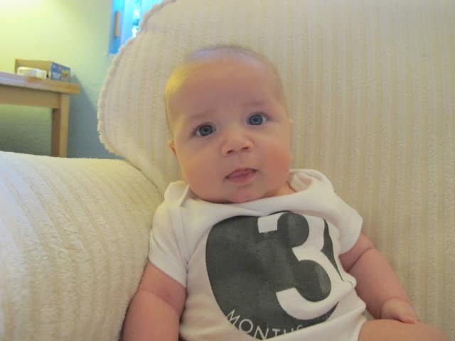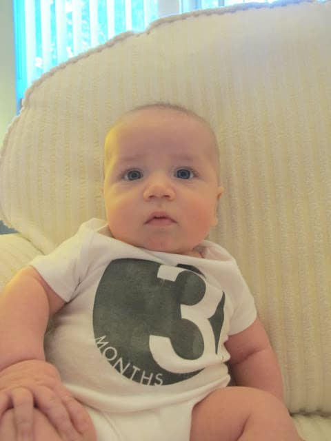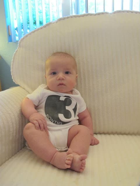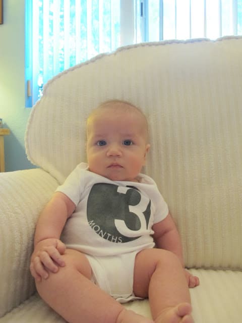 What a great month this has been. He's growing every day and changing. He experienced his very first Christmas this month and a even got to sit on Santa's lap. He's definitely starting to smile more and holding his head up pretty steady. He got his first cold this month, but has been doing pretty good besides the cough. To make certain I remember his growth, I'll be taking pictures in the numbered onsies each month for the first 12 months. Want to save this project? Enter your email below, and then we'll send it straight to your inbox. Plus get awesome new projects from us each week.