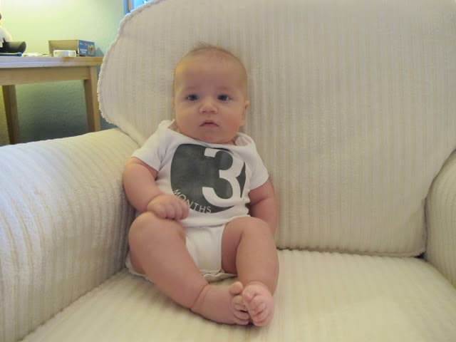 What a great month this has been. He's growing every day and changing. He experienced his very first Christmas this month and a even got to sit on Santa's lap. He's definitely starting to smile more and holding his head up pretty steady. He got his first cold this month, but has been doing pretty good besides the cough. To make certain I remember his growth, I'll be taking pictures in the numbered onsies each month for the first 12 months. Want to save this project? Enter your email below, and then we'll send it straight to your inbox. Plus get awesome new projects from us each week.