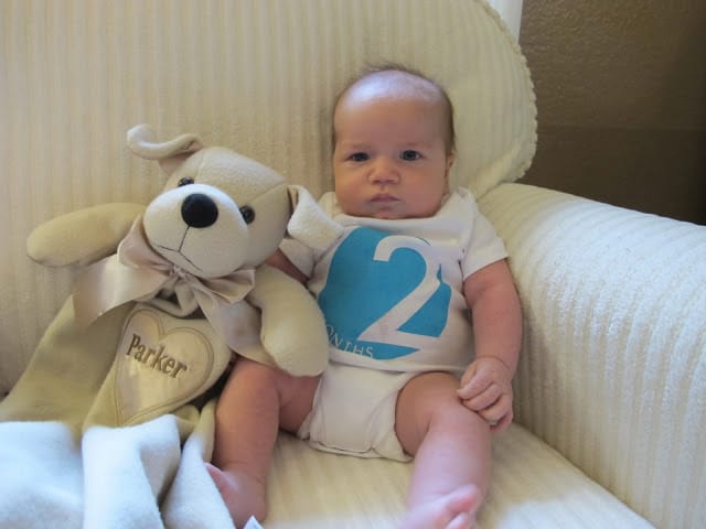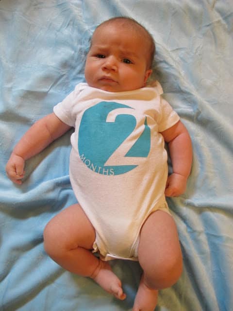 To make certain I remember his growth, I'll be taking pictures in the numbered onesies each month for the first 12 months.