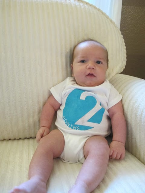 To make certain I remember his growth, I'll be taking pictures in the numbered onesies each month for the first 12 months.