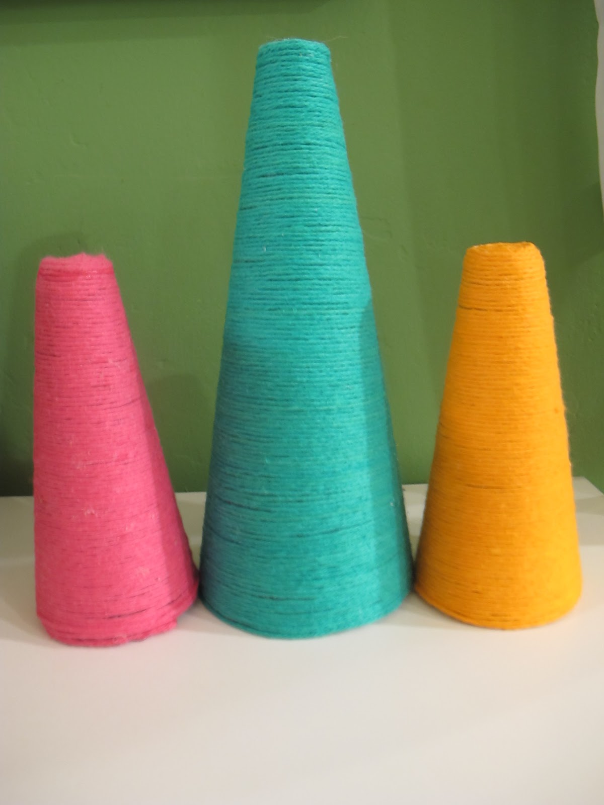 Starting at the top, circle the yarn into spiral. Lay glue along the sides and continue the yarn all the way to the bottom. Super simple. Any and all colors you'd like